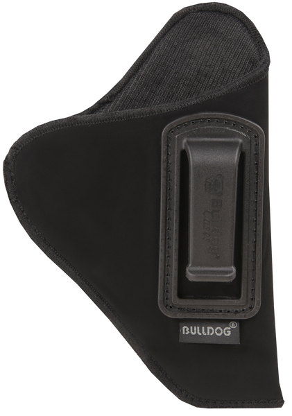Bulldog's deluxe inside the waistband holsters offer a uniquely fused padding and vapor barrier that help keep the weapon dry and protect the skin from the pistol's curves and sharp edges.This holster features a special spiral binding that minimizes discomfort when worn directly against the skin.The smooth inner lining offers a snag-free draw while the suede-like outer material is comfortable and itch free.Its molded polymer clip can be worn over the pant top or belt.Fits sub-compact autos w/2-3" barrels.