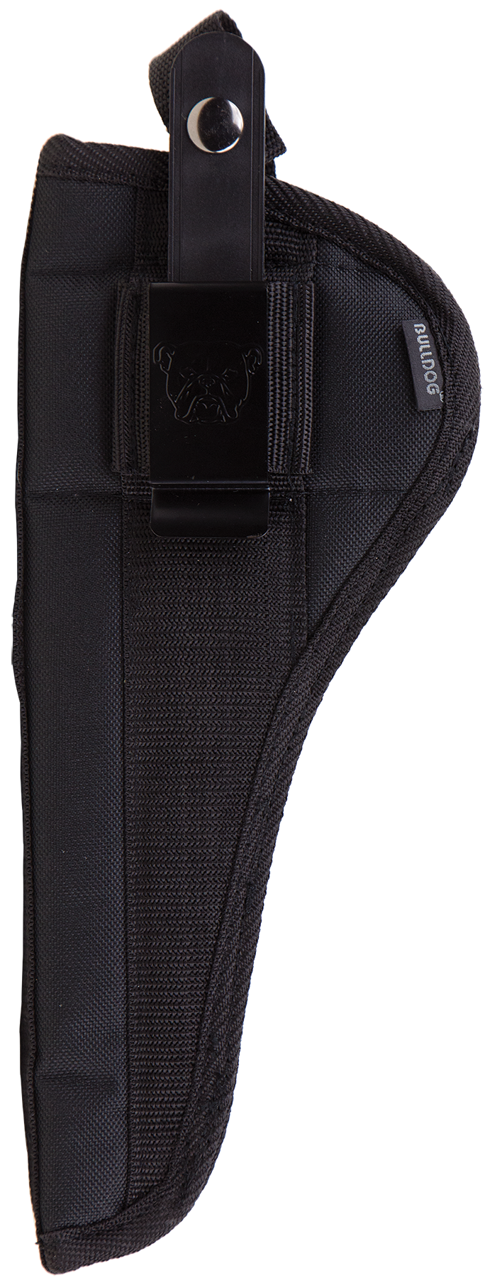 Bulldog's extreme holsters have four wall construction.The outer wall fabric is heavy-duty, water-resistant nylon and the inner wall has a vinyl vapor barrier with deluxe padding and a soft, scratch-resistant fabric.It has a spine protector to keep gun sights from tearing the inner lining.Fits ruger mark style autos w/5-6.87".