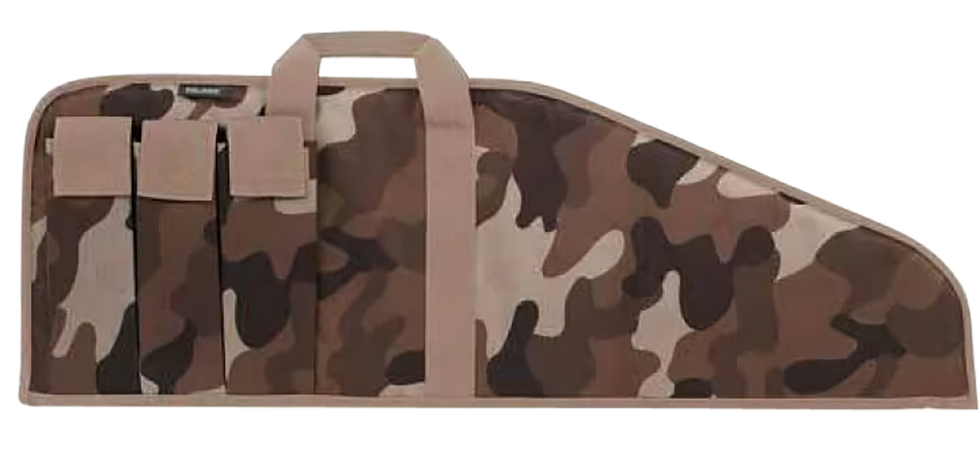 The pit bull case has a water-resistant durable outer shell and a heat-resistant inner lining that won't stick to barrels.It has 1.75" total padding, a deluxe zipper with zipper pulls and three external magazine pouches with velcro flaps.This case fits rifles up to 36" and it floats.Proofs: Water ResistantColor: Throwback CamoMaterial: NylonFinish: TexturedPadding: 1.5"Guns Held: RifleFloatable: YesView more