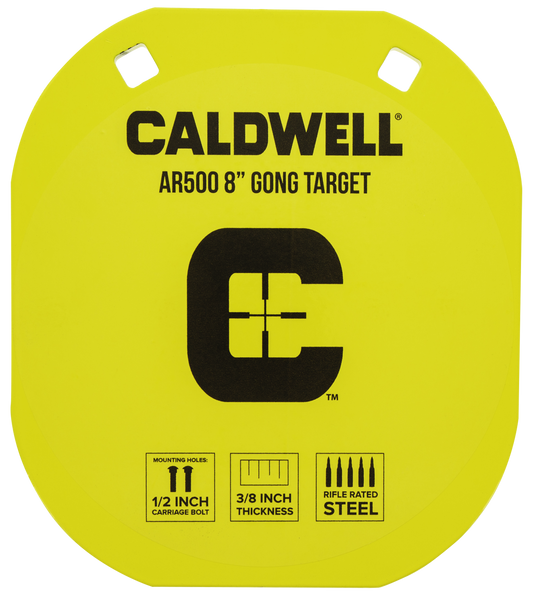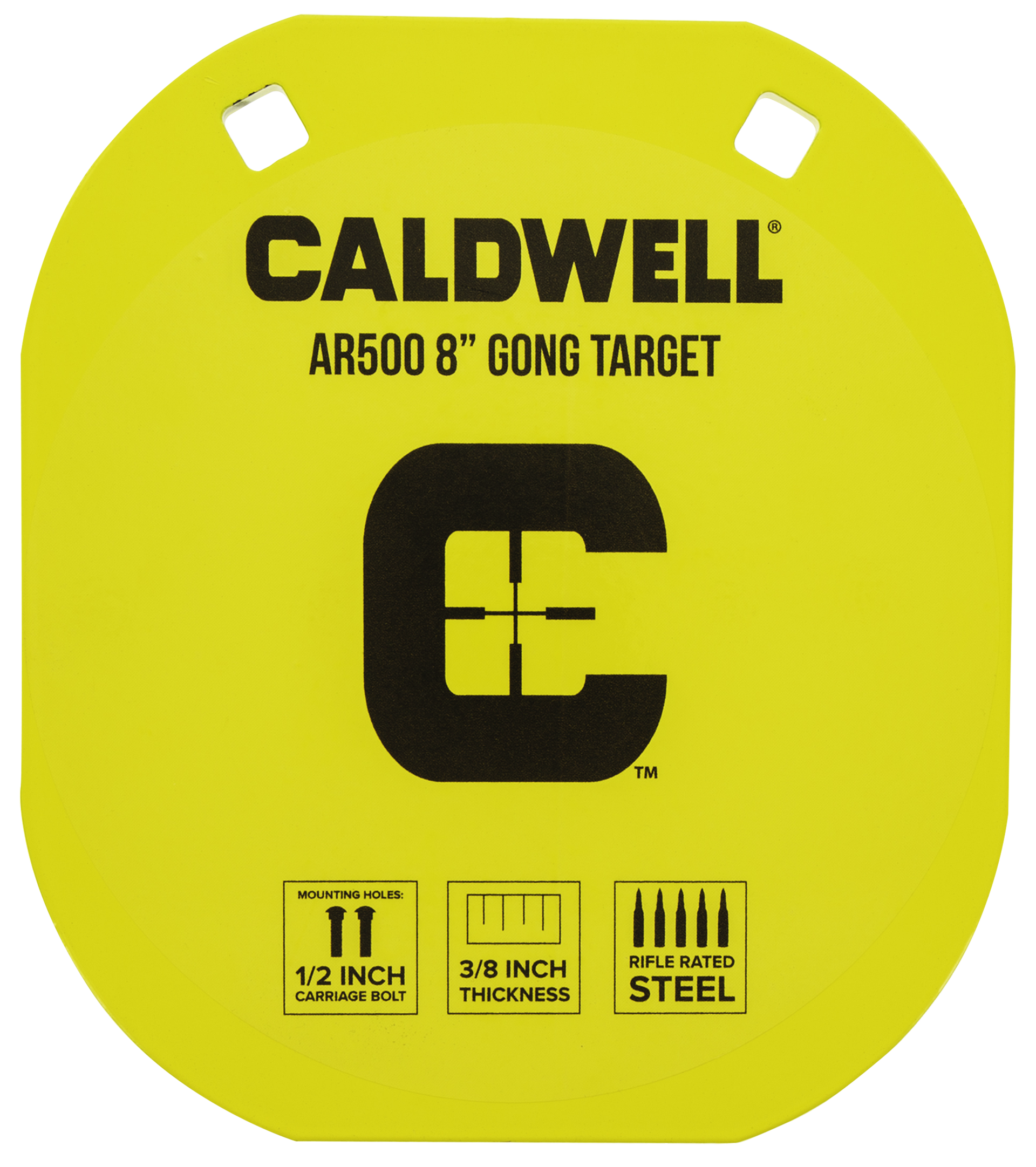 Caldwell's new bright, easy-to-see targets come in all shapes and sizes for competition, training, and recreational use.Made of ar500 hardened steel, these targets can withstand thousands of rounds.Rated up to a 3000 fps impact velocity and a 3500 ft-lb impact energy.Size: 8"Material: AR500 SteelMount Type: HangingTarget Color: YellowWeight: 7 lbsView more
