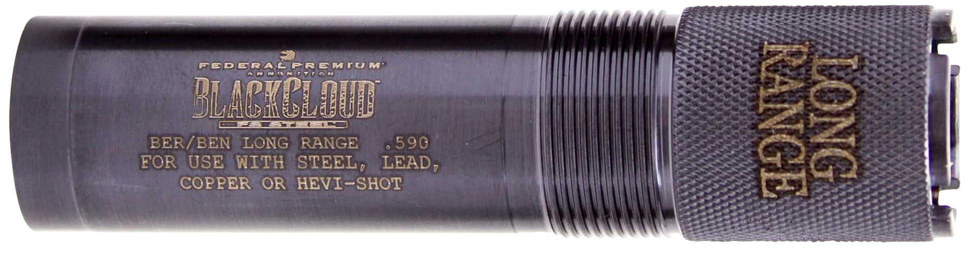Carlson's black cloud choke tubes are specifically designed to get the most performance from federal's new black cloud ammunition, but perform extremely well with other steel shotshells.The extended tube is constructed of a titanium-coated steel, the titanium coating helps the uniquely designed flitecontrol wad in the black cloud ammunition perform downrange with less build-up in the choke and allows the flitestopper shot to do its job this increasing your take in the field.The mid range model can be used with all steel shot sizes, and with ammunition that exceeds 1550 fps.Black cloud ammunition has been designed to be used with choke tubes that do not use porting or wad stopping devices.