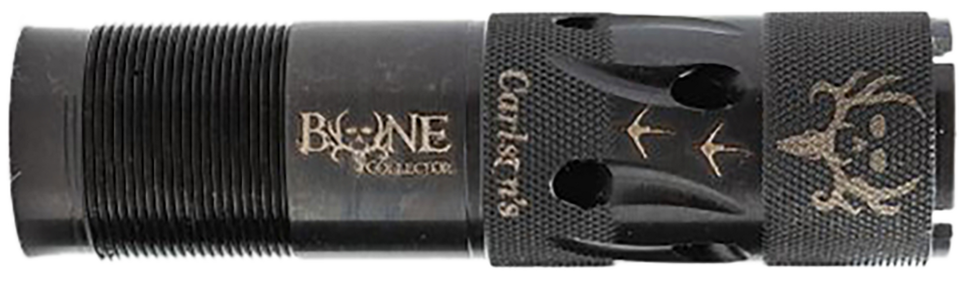 Carlsons ported bone collector turkey choke tubes feature a super tight, pattern tested constriction that throws extremely tight patterns with all shotshell ammunition loaded for turkey hunting including lead, nickel-plated, copperplated, bismuth, hevi-shot, tungsten, and tss.A longer taper section to the constriction (parallel section of choke tube) insure tight patterns with less flyers.More pellets on target every shot! the bone collector choke tubes are precision-machined from 17-4 heat treated stainless steel and feature a non-reflective matte black finish.Each choke tube constriction has been pattern tested and has thrown the best patterns with 4 through 10 shot.If you wish to use shot sizes larger than #4 shot, use a more open choke tube for optimum patterning.Remember to pattern your shotgun choke tube with the specific shot shell load you are going to be using.Different types and manufacturers of ammunition will throw different patterns from the same choke tube.