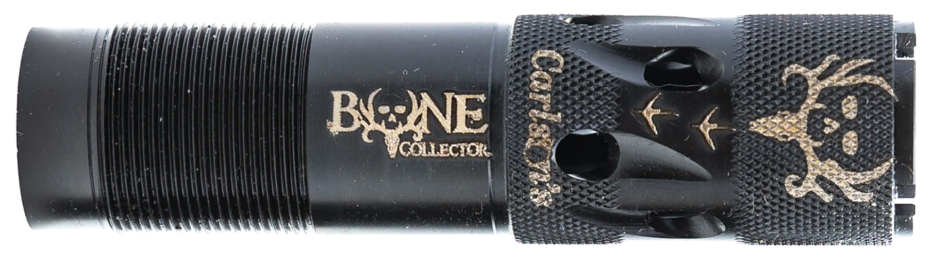 Carlson's ported bone collector turkey choke tubes feature a super tight, pattern tested constriction that throws extremely tight patterns with all shotshell ammunition loaded for turkey hunting including lead, nickel-plated, copperplated, bismuth, hevi-shot, tungsten, and tss.A longer taper section to the constriction (parallel section of choke tube) insure tight patterns with less flyers.More pellets on target every shot! the bone collector choke tubes are precision-machined from 17-4 heat treated stainless steel and feature a non-reflective matte black finish.Each choke tube constriction has been pattern tested and has thrown the best patterns with 4 through 10 shot.If you wish to use shot sizes larger than #4 shot, use a more open choke tube for optimum patterning.Remember to pattern your shotgun choke tube with the specific shot shell load you are going to be using.Different types and manufacturers of ammunition will throw different patterns from the same choke tube.Do not use any steel shot larger than #4, slugs, sabots, rifled slugs, & 00/000 buckshot through a carlsons turkey choke.
