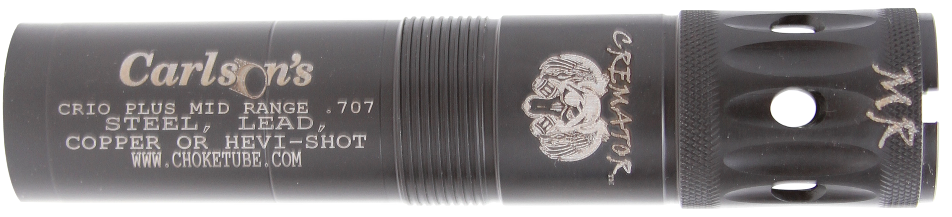 Carlson's cremator choke tubes feature our new triple shot technology and is offered in close mid and long range constrictions.Tst is a series of three graduated rings in the taper section of the choke tube, that allow a more gradual transition from the shotgun bore to the final constriction.The cremator offers reduced pellet deformation, less flyers, more dense patterns, wrench-less installation, quick removal and muzzle...View more