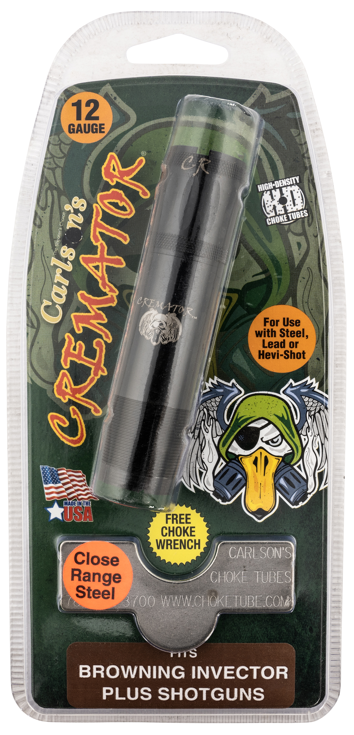 Carlsons cremator choke tubes feature our brand new triple shot technology (tst) and is offered in close mid and long range constrictions.Tst is a series of three graduated rings in the taper section of the choke tube that allows a more gradual transition from the shotgun bore to the final constriction.This design offers reduced pellet deformation, less flyers and more dense patterns.These benefits make the...View more