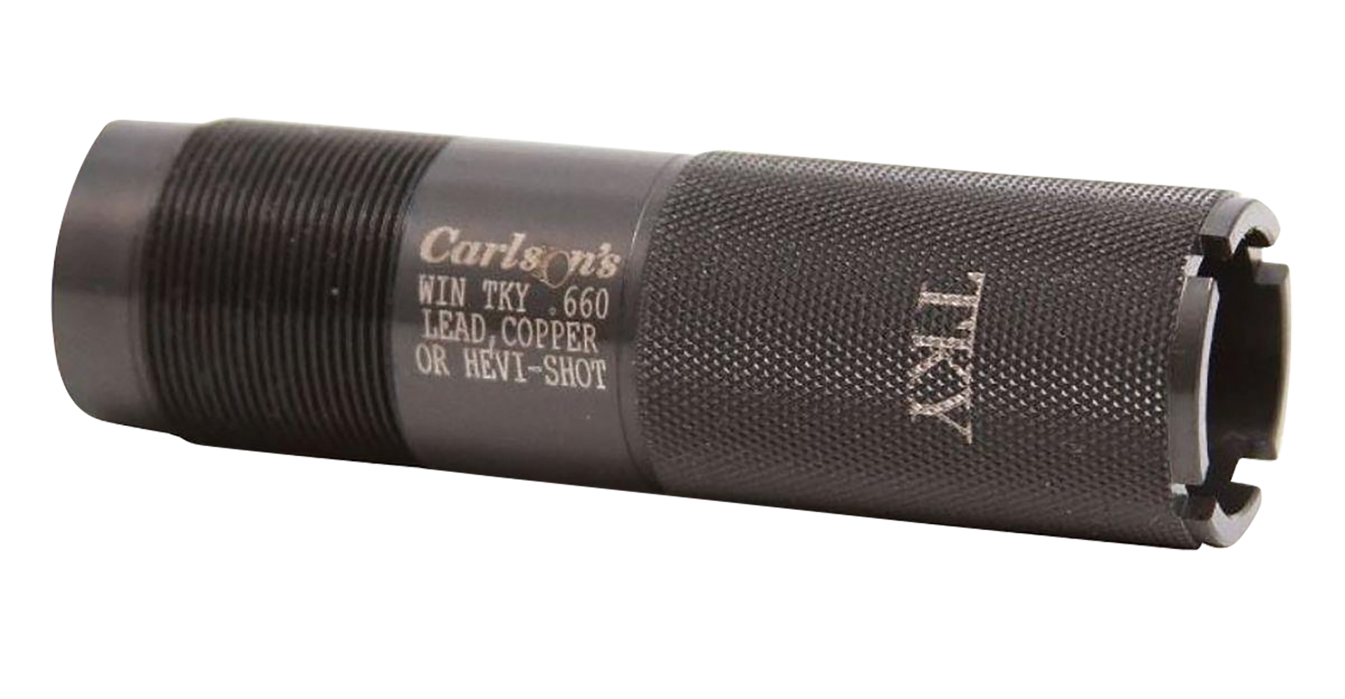 Carlson's extended turkey choke tubes extend approximately 1" from the end of the barrel.They are manufactured from 17-4 heat treated stainless steel and have a matte blue finish.Our extended turkey choke tubes feature a 1.050" parallel section to produce the optimum pattern with your shotgun.*note- no steel shot larger than #4 may be used in our turkey choke tubes.Winchester sx-p, sx-2, sx-3 & sx-4 use browning invector plus tubes--order browning invector plus for these model of shotguns.