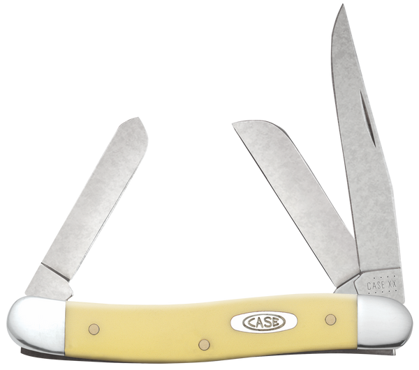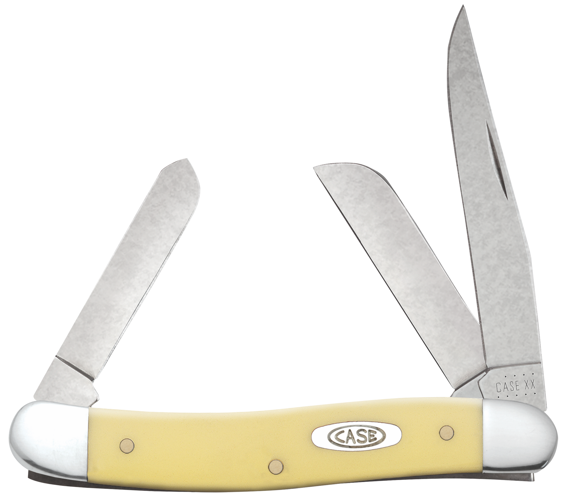Case medium stockman's distinctive yellow handle brightens this family while maintaining its toughness.Stockman's pack three blades, the clip and sheepfoot blade sit on the pocket end while the spey blade sits on the cap end.The clip blade is commonly used as a multi-purpose blade and preferred for detail work.The sheepfoot blade allows for added strength at the point making it great for carving and achieving...View more