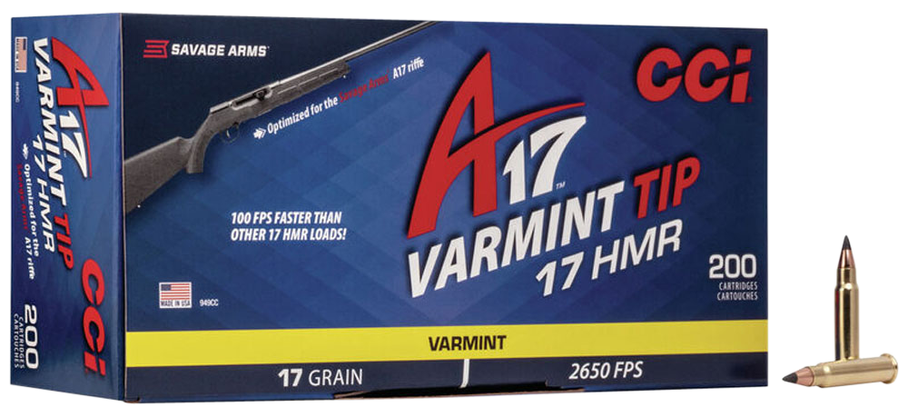 The varmint ammunition line features a variety of bullet technologies that are designed for the same goal: total devastation on impact.The a17 load is literally built around the a17 rifle from savage.The round is optimized for feeding and function in the semi-automatic rifle, and produces muzzle velocities 100 fps faster than other 17 hmr loads with the same bullet weight.Its varmint tip bullet ensures explosive expansion and quick, clean kills.