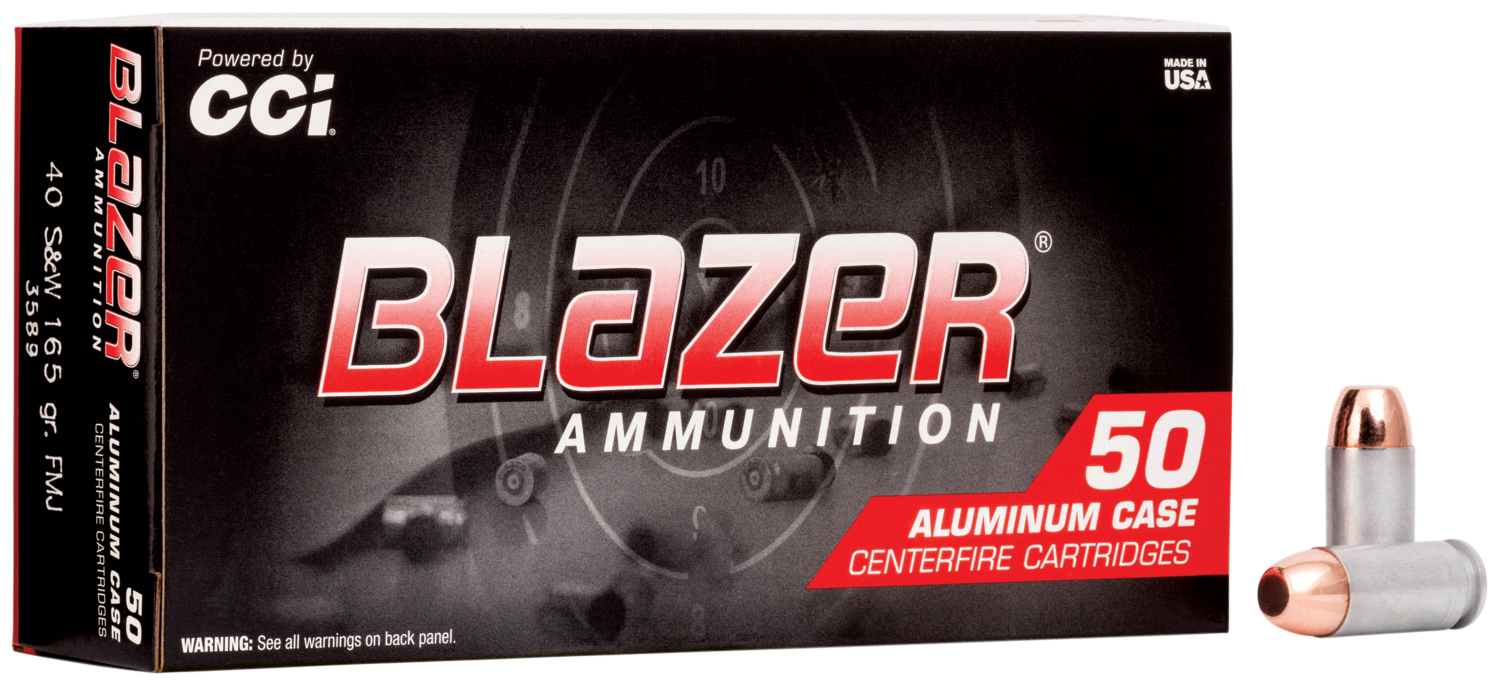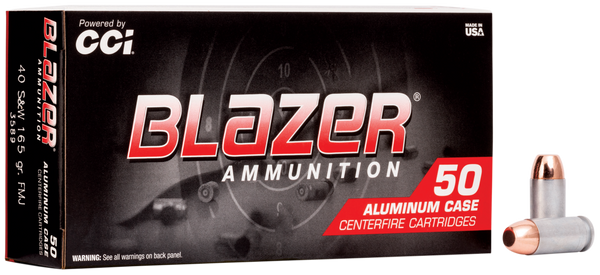 Shoot more for less with blazer aluminum.The loads feature aluminum cases to keep price to a minimum, yet offer reliable accurate performance for training at the range.Caliber: 40 S&WBullet Type: Total Metal JacketBullet Weight: 165 grMuzzle Energy: 443 ft lbsMuzzle Velocity: 1100 fpsRounds Per Box: 50Boxes Per Case: 20Application: Target ShootingCasing Material: AluminumHazair: YesView more