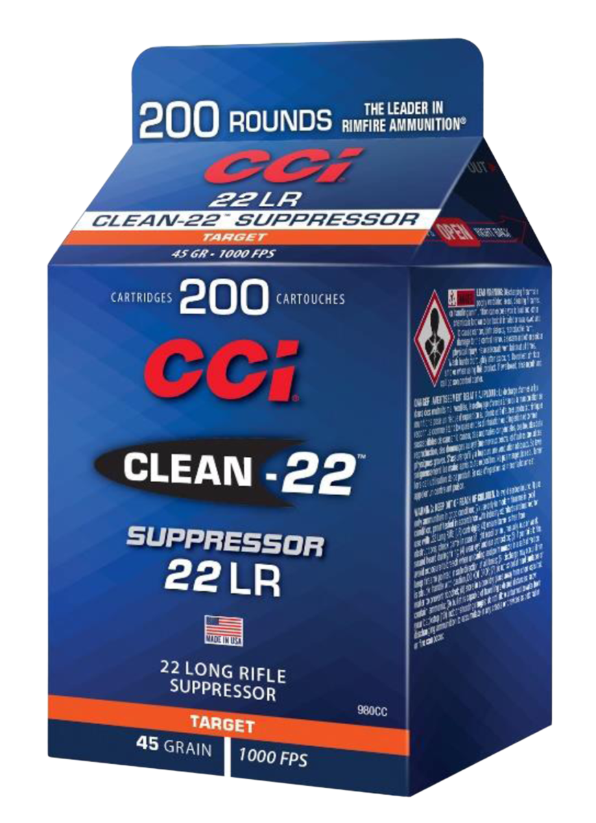 Cci's clean-22 suppressor uses an advanced polymer bullet coating to reduce lead fouling inside a suppressor by 60 percent.The exclusive feature allows much easier suppressor cleaning and maintenance, as well as excellent accuracy.