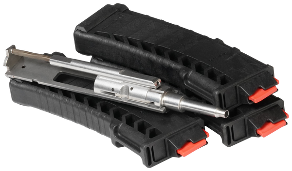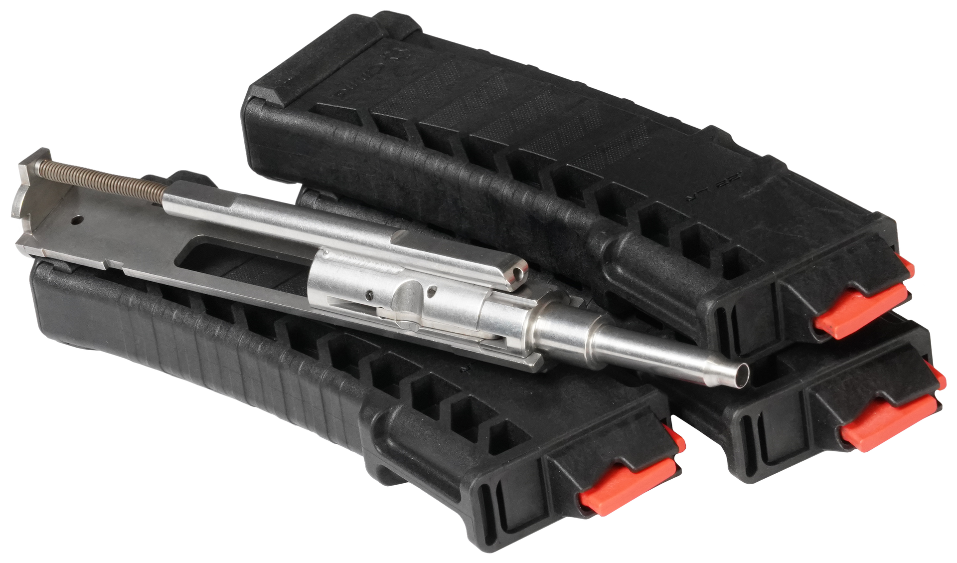 Just swap this drop in conversion with the bolt carrier group from your 5.56/.223 chambered rifle and you will be ready to shoot 22lr.Ships with three 10rd magazines.For best performance use a round style hammer as notched hammers can cause function issues and 36 grain plated nose bullets have proven to be the best choice for function.