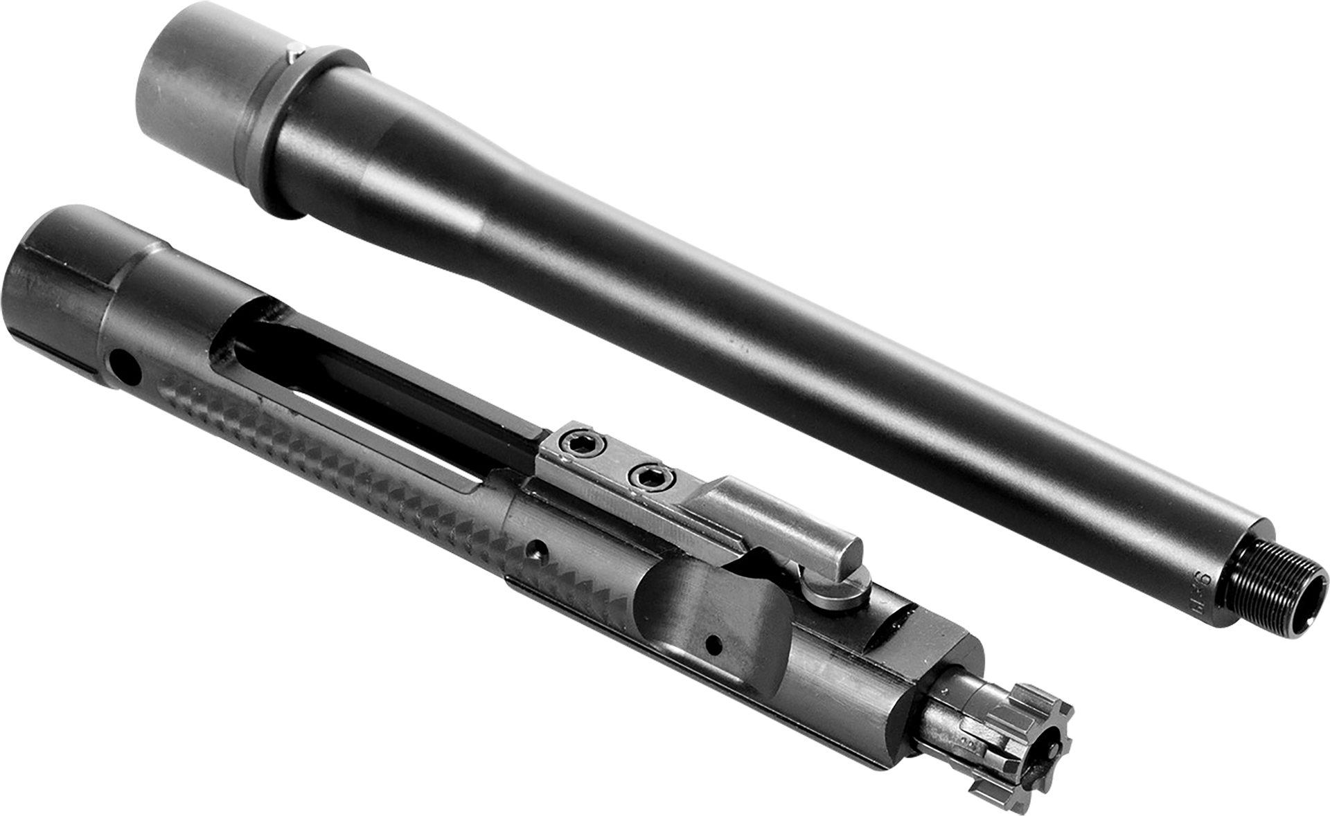 Cmmg's 9mm barrel and bcg kit allow you to build a pistol caliber carbine using cmmg's patent pending radial delayed blowback system.Unlike typical direct blowback systems, rdb uses a bolt that is forced to rotate and unlock, slowing the bcg.This results in a lighter bcg for a lighter rifle, and less felt recoil than a straight blowback system.Their barrel and bolt kits are designed to work exclusively with mil-spec ar-15 upper receivers with a modified ejection port, like their mkg/mkgs upper, and most mil-spec ar15 lowers when used with 9 ar conversion mags as well as their mkgs mk17 and mk9* lowers.Other manufacturers receivers may work, but we cannot guarantee function or reliability.*older mk9 lowers will require one of their retrofit kits to convert it to a radial delayed blowback compatible lower, instead of traditional blowback.