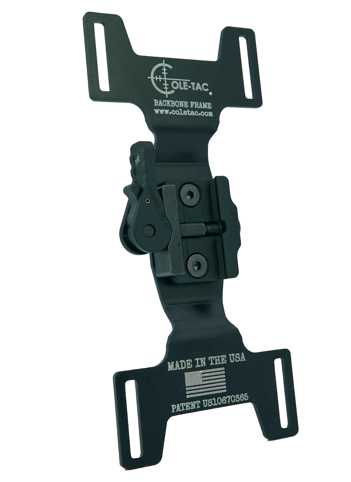 The backbone bag frame represents the next revolution in support bags.The patented design eliminates the need for straps that attach the support bag over the rifle or optic.The hard-coat anodized frame attaches to the rifle by either an american defense picatinny mount or an area 419 arcalock mount.Four hook and loop straps keep the bags securely in place, and the wide surface area of the frame prevents the bags from twisting and shifting.