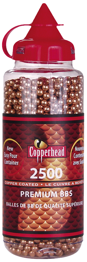 Crosman has the only copper-coated steel bbs.These copperhead bbs are sold in user-friendly, resealable plastic packaging with an easy-pour spout.