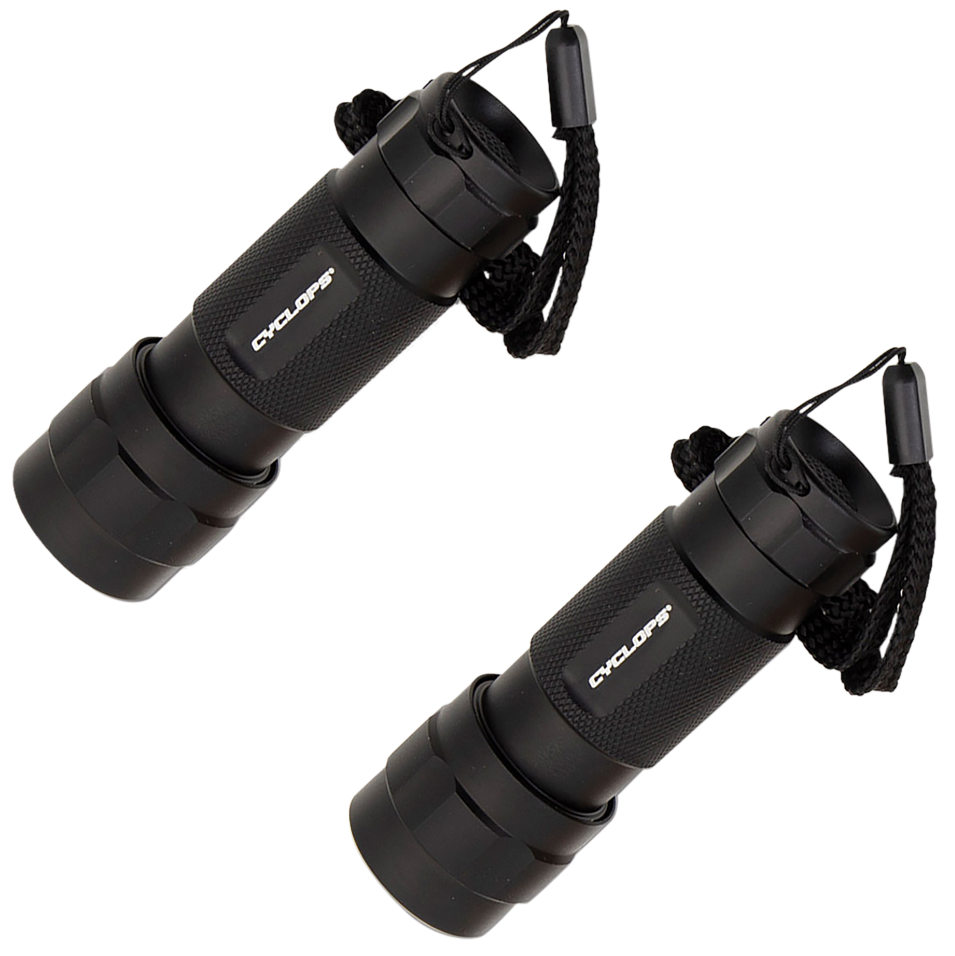 The cyclops 14 led flashlight is an aviation grade aluminum flashlight with a black anodized finish and anti-roll housing design that is dust/shock and water resistant.Features 14 led bulbs with 80 lumens, 60 meter range and a 5.5 hors run time.Includes three aaa batteries.Comes in a package of2.