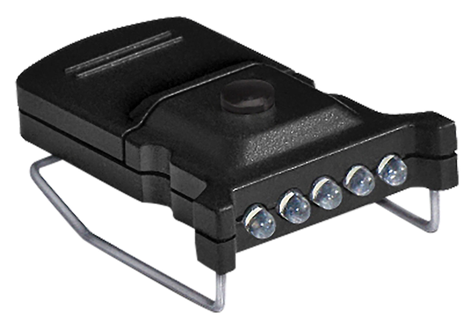 Cyclops' micro hat clip light.5 super bright leds with built-in 15 angle tilt.Weighs less than an ounce, top mount design does not obstruct vision.2 units in one package.