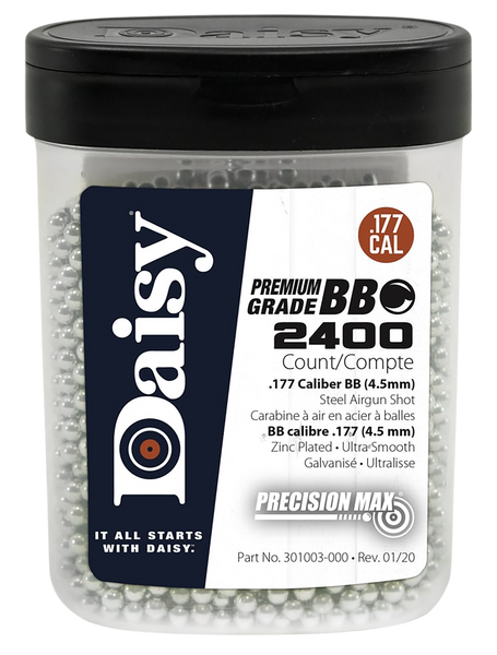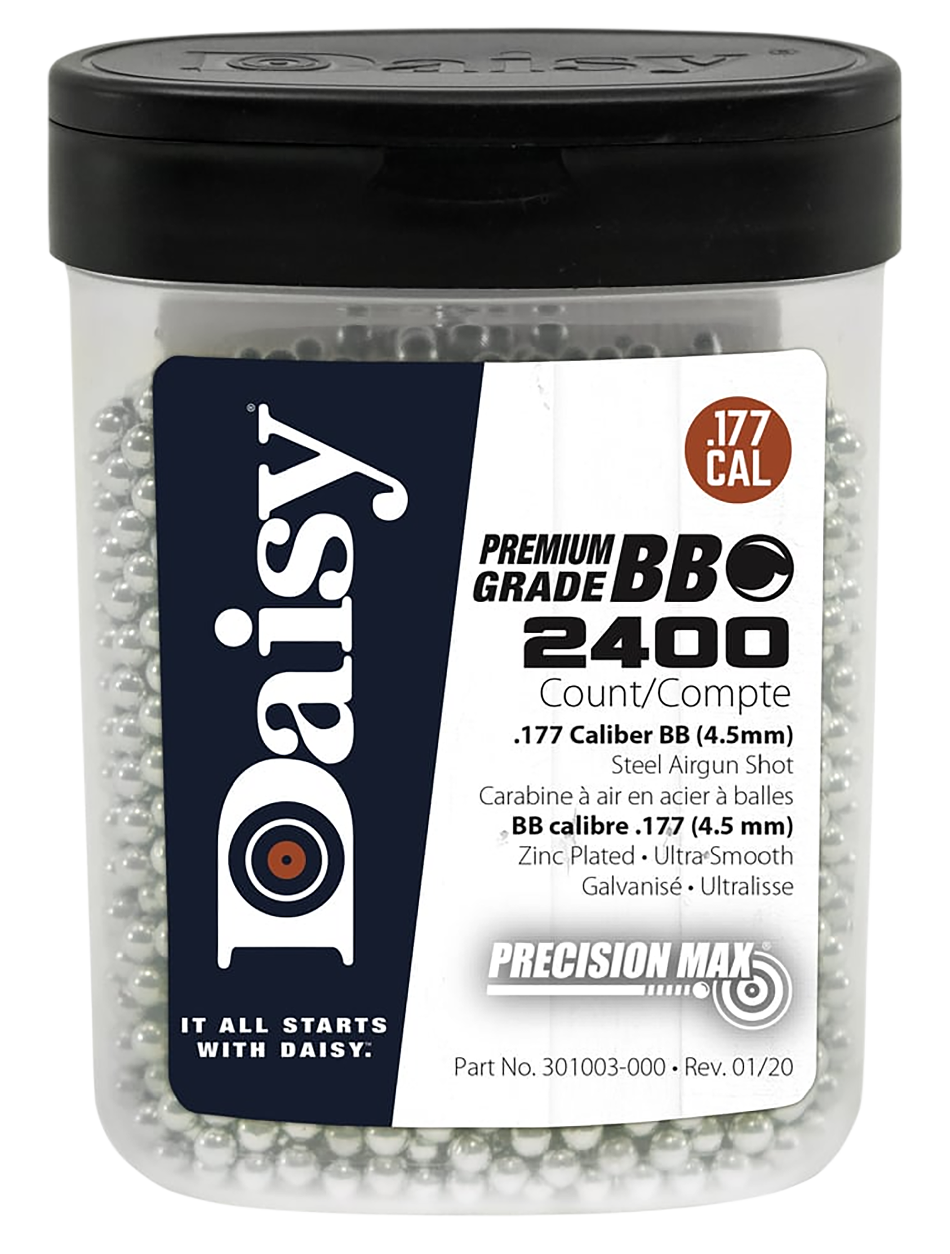 These zinc-plated steel.177 caliber, 4.5mm bbs comes in a handy bottle with one large and one small flip-top opening for easy dispensing.