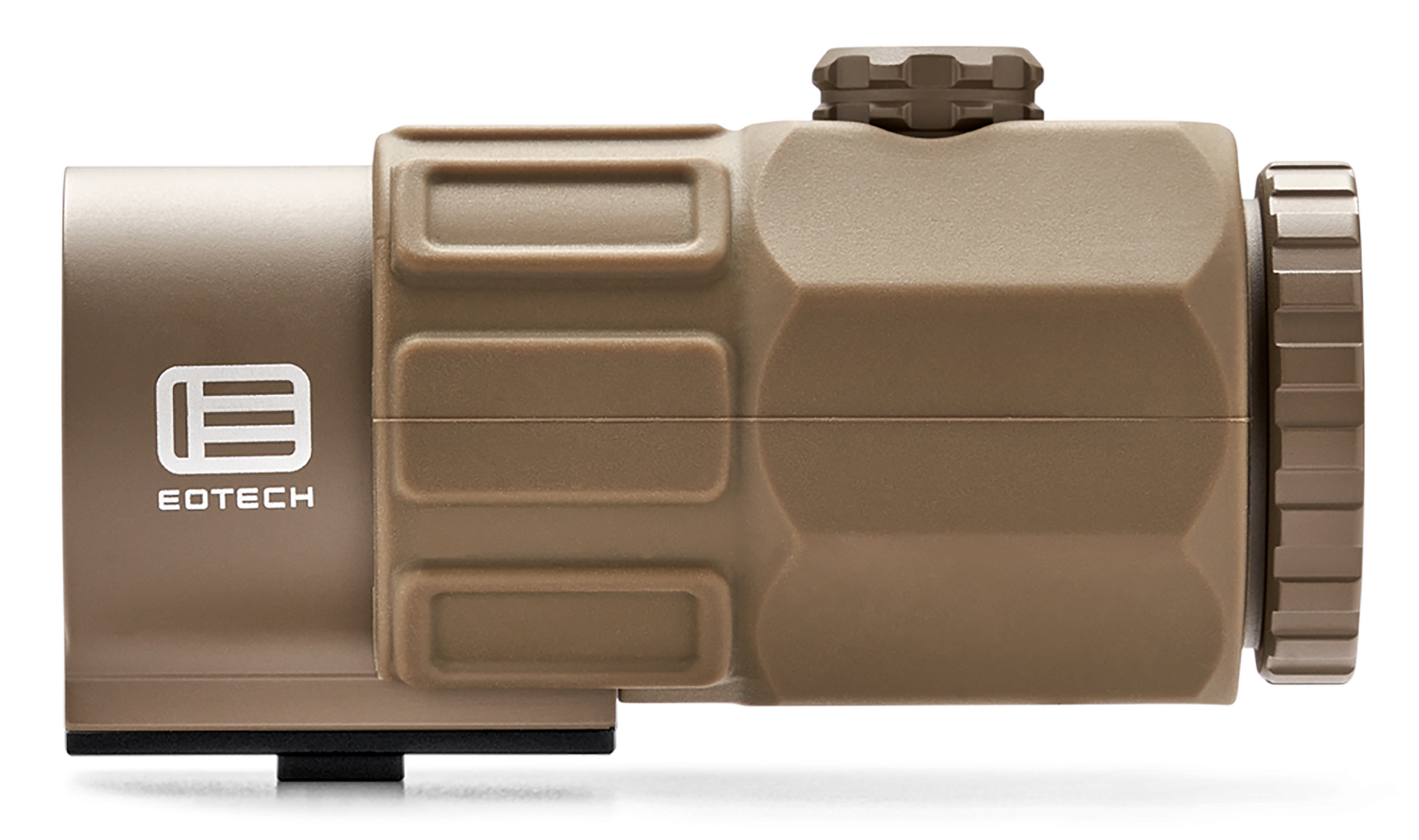 The eotech g45.Nmtan 5x magnifier offers greater precision with 5x magnification in a compact design similar to the g33.It features tool-free windage and elevation adjustments, a wide field of view, and is compatible with all eotech hws models.Mount not included.Tan/fde finish.