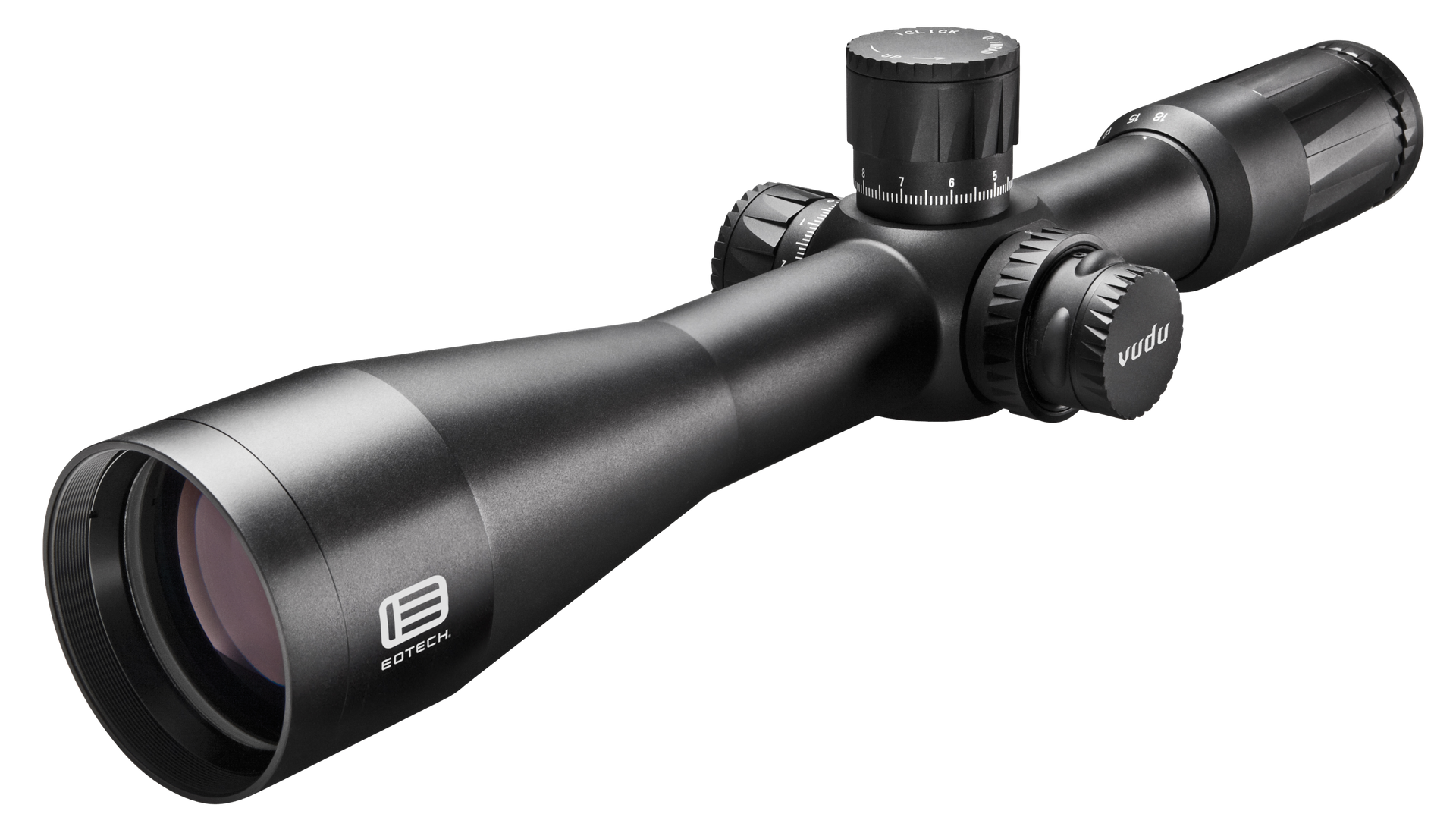 The eotech vudu 3.5-18x50 ffp md1 side-mounted parallax adjustment facilitates rapid reticle focus for the most challenging long-range shots.Features high-density (hd) glass, oversized, precision-machined turrets with ez chek zero stop, eotech-style speed ring reticle- designed for fast target engagement at low power, push button illumination control and auto power down.Includes throw lever, battery, allen wrench and lens cloth.
