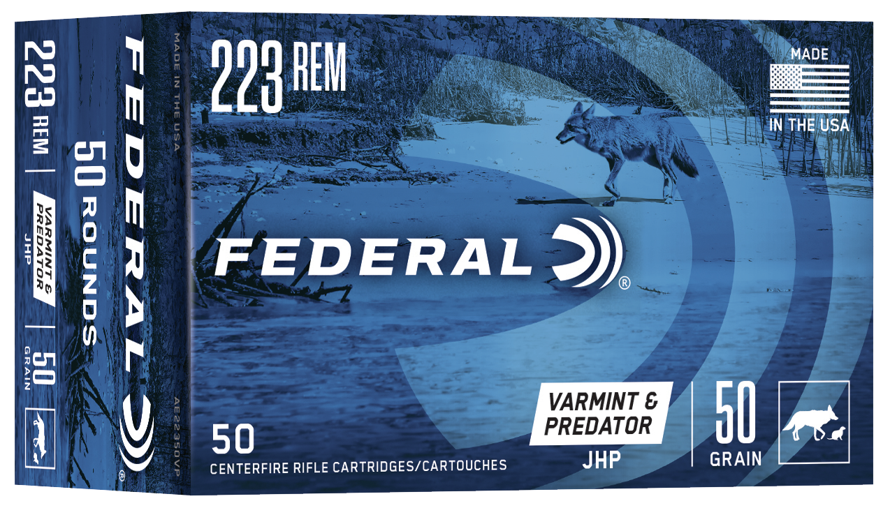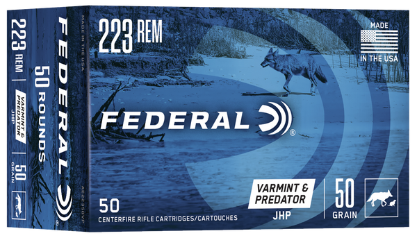 Federal varmint & predator loads use top-quality bullet designs to deliver accuracy and explosive expansion.The extremely reliable brass, primer and propellant ensure the utmost reliability.Caliber: 223 RemBullet Type: Jacketed Hollow PointBullet Weight: 50 grMuzzle Energy: 1227 ft lbsMuzzle Velocity: 3325 fpsRounds Per Box: 50Boxes Per Case: 5Application: HuntingCasing Material: BrassHazair: YesView more