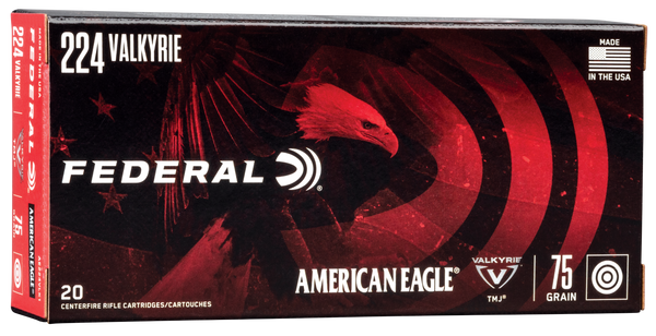 American eagle rifle ammunition offers consistent, accurate performance at a price that's perfect for high-volume shooting.The loads feature quality bullets, reloadable brass cases and dependable primers.Caliber: 224 ValkyrieBullet Type: Full Metal JacketBullet Weight: 75 grMuzzle Energy: 1499 ft lbsMuzzle Velocity: 3000 fpsRounds Per Box: 20Boxes Per Case: 10Application: Target ShootingCasing Material: BrassHazair: YesView more