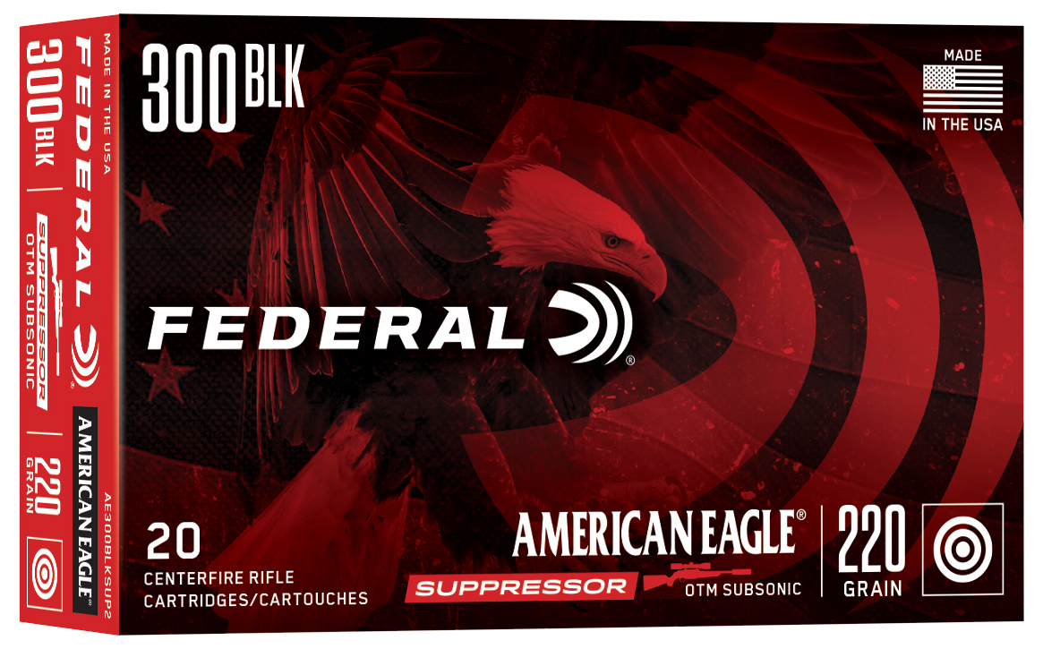 American eagle suppressor ammunition delivers superior accuracy, reliability and cleanliness in suppressed firearms, thanks to carefully selected propellants, bullet weights and profiles.In addition, special clean-burning powders make it easy for shooters to clean their weapons other conventional ammunition can cause severe fouling in suppressed firearms.Caliber: 300 BlackoutBullet Type: Open Tip MatchBullet Weight: 220 grMuzzle Energy: 488 ft lbsMuzzle Velocity: 1000 fpsRounds Per Box: 20Boxes Per...View more