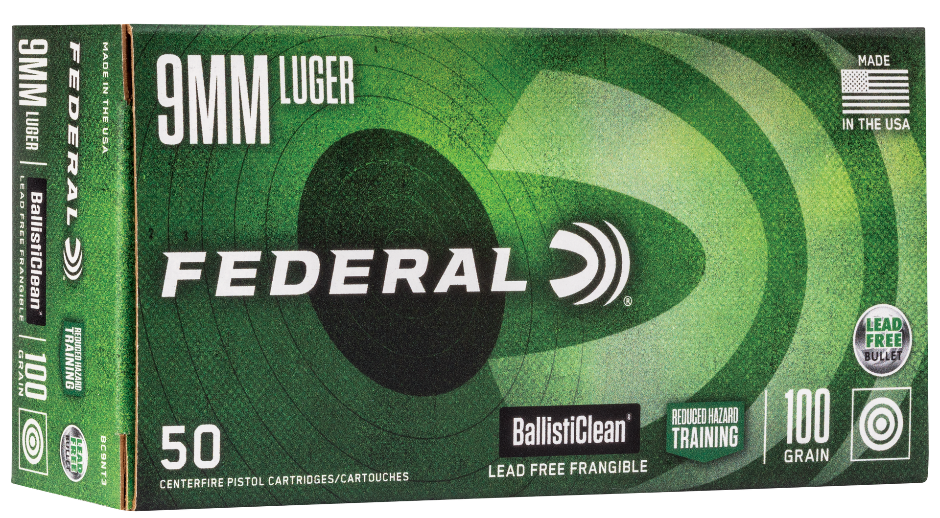 Federal's ballisticlean is a non-toxic projectile that eliminates hazard of airborne lead and barrel fouling.Its patented toxic-metal free primer provides constant and reliable ignition.The ballisticlean also features a selected clean burning powder for consistent velocity and optimum ballistic performance.