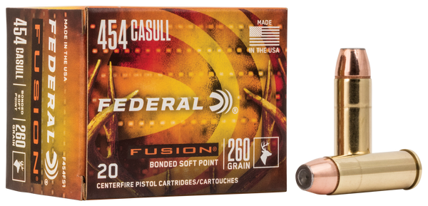 Fusion handgun features the same molecularly fused bullet construction as its rifle counterparts for the toughness, accuracy, and terminal performance short-barrel hunters need.The loads bullet weights and velocities have also been optimized to be lethal on deer without punishing the shooter.
