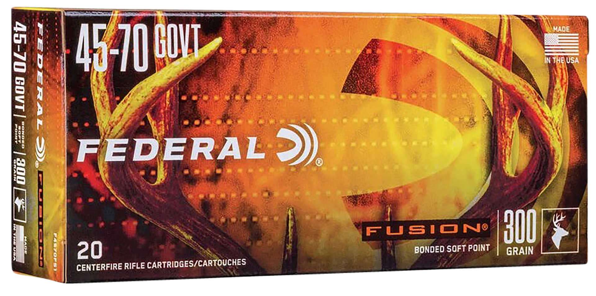 Fusion was the first rifle ammunition specifically built for deer hunting and its still the best, offering the largest expansion and highest weight retention in head-to-head comparisons against the competition.With a molecularity fused jacket and a pressure-formed core, fusion transfers maximum energy on target.Caliber: 45-70 GovBullet Type: Bonded Soft PointBullet Weight: 300 grMuzzle Energy: 2280 ft lbsMuzzle Velocity: 1850 fpsRounds Per Box: 20Boxes Per Case:...View more