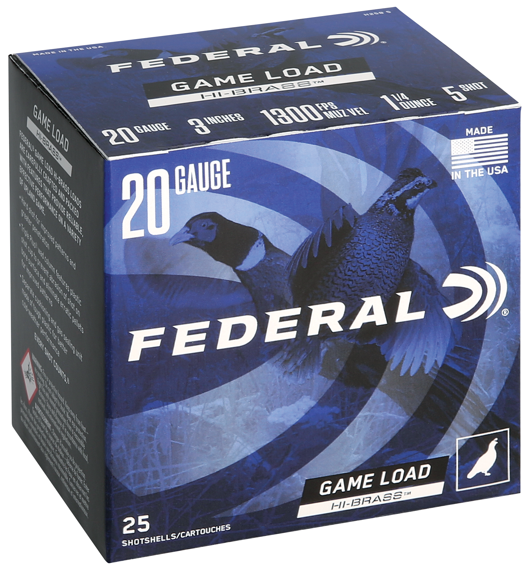 Federal game-shok upland heavy field loads are carefully crafted and packed with features that provide reliable, effective performance on a variety of upland game.Gauge: 20 GaugeLength: 3"Ounces: 1 1/4 ozShot Size: 5Muzzle Velocity: 1300 fpsRounds Per Box: 25Boxes Per Case: 10Application: HuntingHazair: YesView more