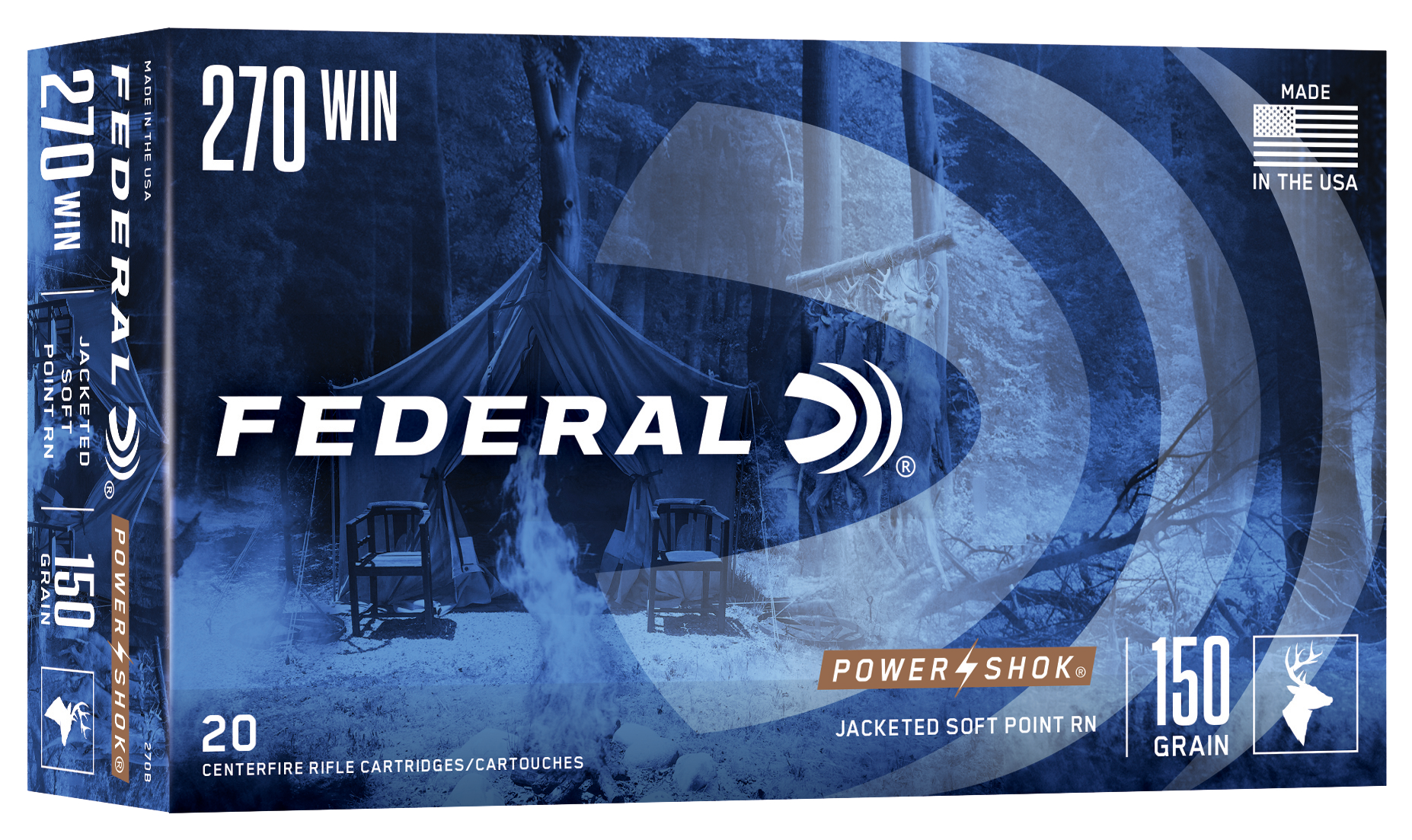 The traditional lead-core hunting bullets in federal power-shok rifle loads provide solid accuracy and power at an affordable price.They feature reliable federal brass, primers and powder and are suited to a wide variety of medium and big game.Caliber: 270 WinBullet Type: Jacketed Soft PointBullet Weight: 150 grMuzzle Energy: 2667 ft lbsMuzzle Velocity: 2830 fpsRounds Per Box: 20Boxes Per Case: 10Application: HuntingCasing Material: BrassHazair: YesView more