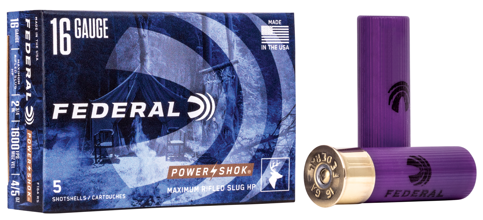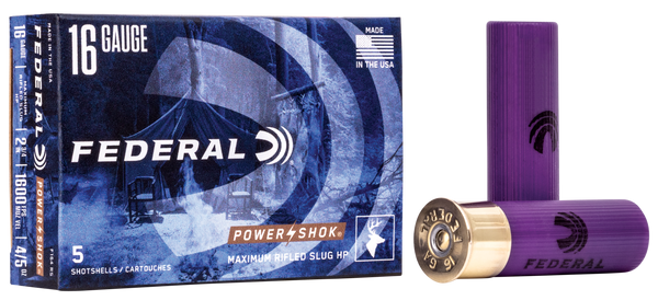 Federal's power-shok slug provides accuracy and power.They are designed for smooth bore barrels and its soft led slug delivers good expansion.Gauge: 16 GaugeType: Rifled SlugLength: 2.75"Ounces: 7/8 ozShot Size: Rifled SlugMuzzle Velocity: 1600 fpsRounds Per Box: 5Boxes Per Case: 50Application: HuntingHazair: YesView more