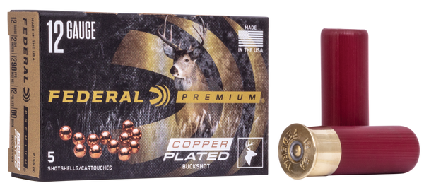 The federal premium loads start with the finest primers, the buckshot uses copper-plated pellets to produce tight patterns and great downrange energy.It also puts more hits on target for impressive stopping power on predators, hogs and deer.Hull Material: PlasticGauge: 12 GaugeType: BuckshotLength: 3"Ounces: 2 ozShot Size: 4 BuckMuzzle Velocity: 1100 fpsRounds Per Box: 5Boxes Per Case: 50Shot Type: BuckshotApplication: HuntingHazair: YesView more