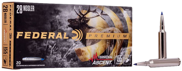 Federal premium terminal ascent bonded construction penetrates deep on close targets, while the slipstream polymer tip initiates expansion at velocities 200 fps lower than comparable designs.The bullet's long, sleek profile offers a high ballistic coefficient, and its accuchannel groove technology improves accuracy and minimizes drag.Caliber: 28 NoslerBullet Type: Terminal AscentBullet Weight: 155 grMuzzle Energy: 3524 ft lbsMuzzle Velocity: 3200 fpsRounds Per Box: 20Boxes Per Case:...View more
