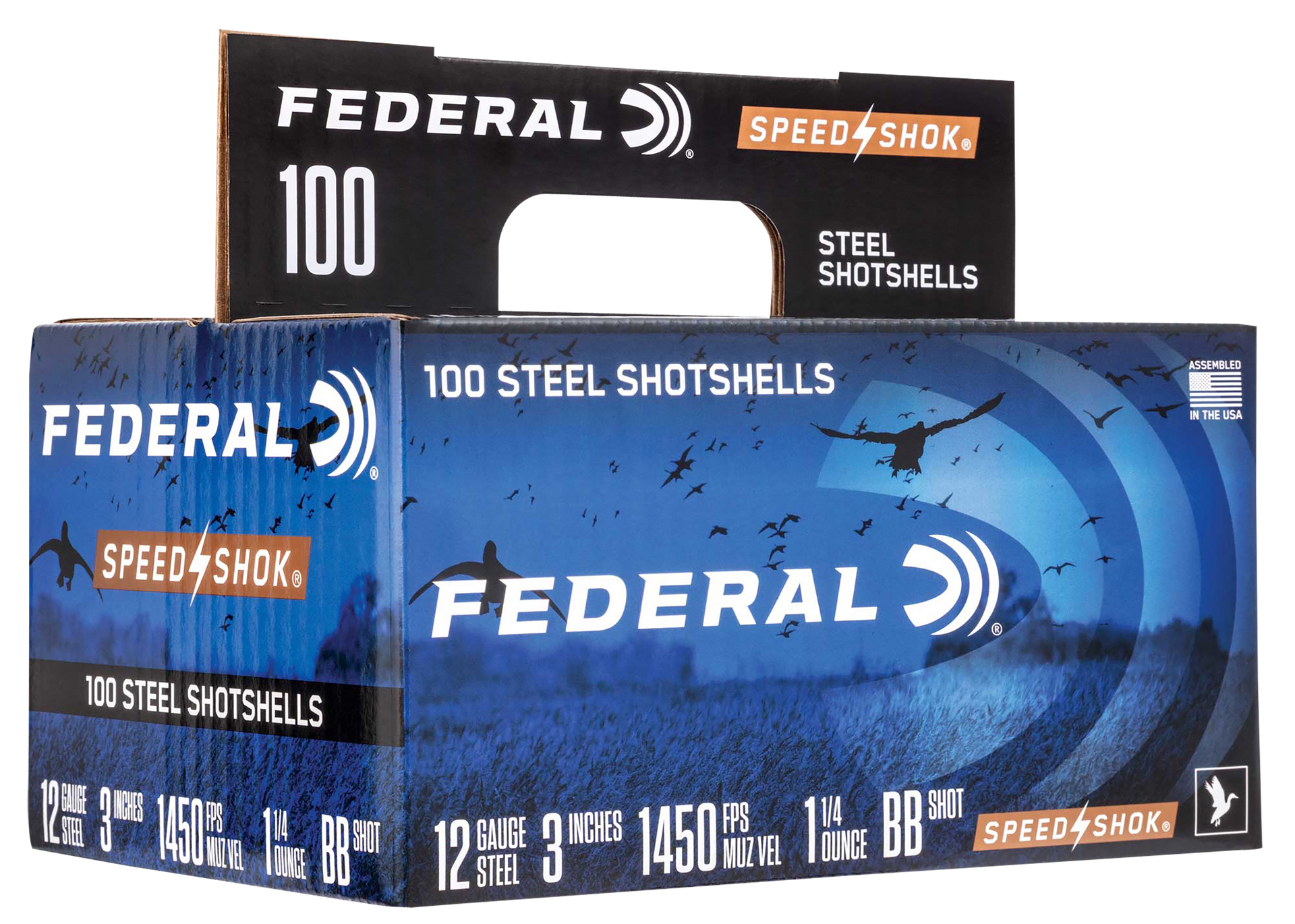 Federal's speed-shok delivers a clean kill.Its high-performance primer and fast-burning powder dramatically reduce residue, while its optimized velocities knock birds out of the sky.Application: HuntingGauge: 12 GaugeLength: 3"Ounces: 1 1/4 ozShot Size: 2Muzzle Velocity: 1450 fpsRounds Per Box: 100Boxes Per Case: 2Hazair: YesView more