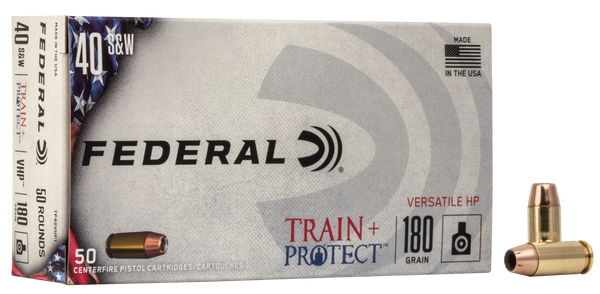 Federal train + protect uses the vhp bullet design to provide both precise, practical, performance at the range, and instant reliable expansion on impact.The result is the ideal combination for training as well as defense.Caliber: 40 S&WBullet Type: Versatile Hollow PointBullet Weight: 180 grMuzzle Energy: 400 ft lbsMuzzle Velocity: 1000 fpsRounds Per Box: 50Boxes Per Case: 10Application: Home DefenseCasing Material: BrassHazair: YesView more