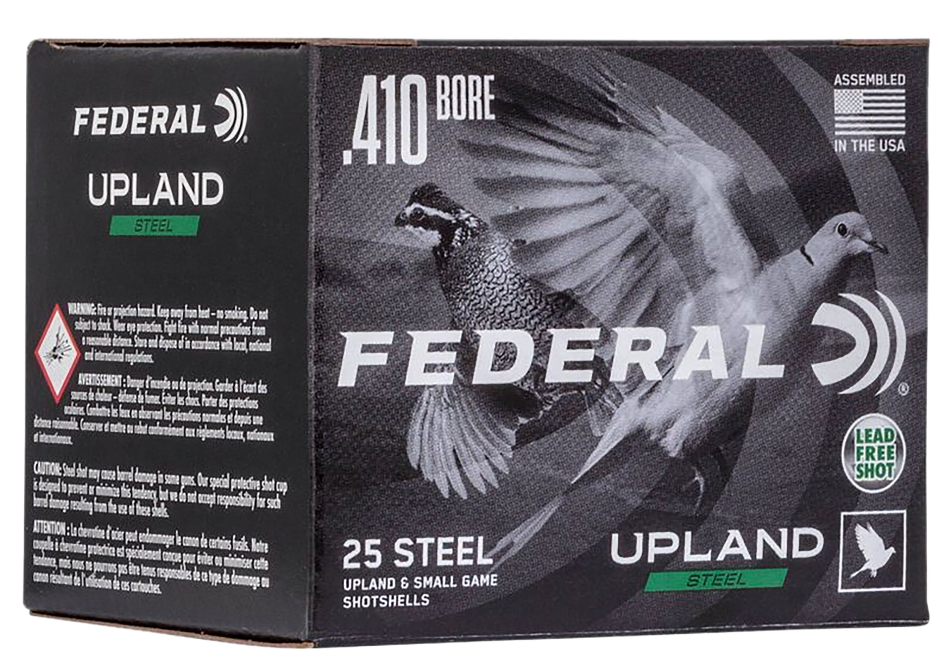 Federal's upland steel serves up the patterns and power hunters need for hard-to-hit birds.The loads are consistent and reliable, with high velocities that make the most of the steel payload.They're the perfect choice for doves and other light upland game, especially in areas that require the use of non-lead shot.