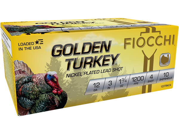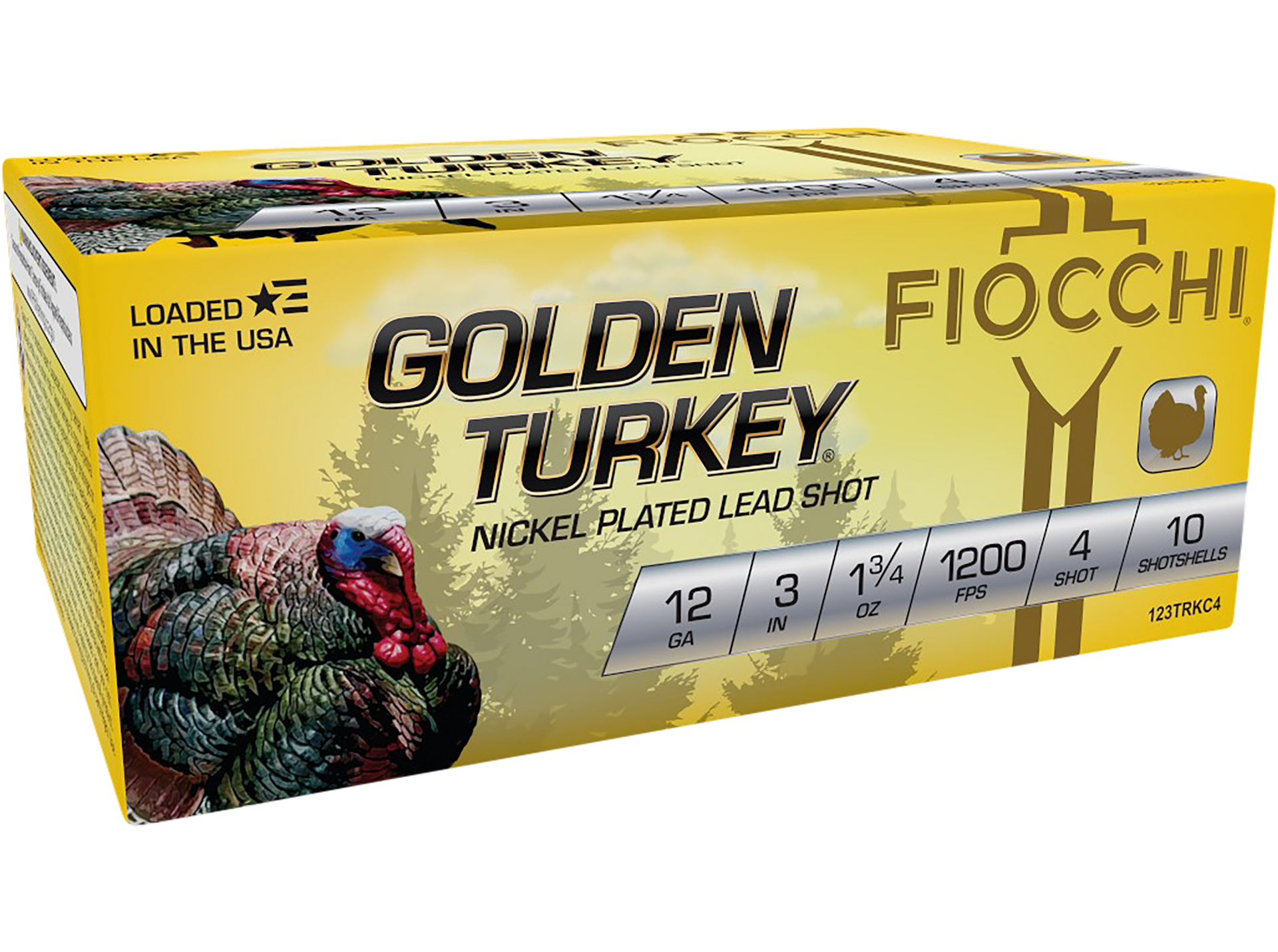 Fiocchi has reinvigorated the keystone golden turkey load.Utilizing the perfected nickel plated lead shot, clean burning powder, and improved wad turkeys wont stand a chance.Fiocchi golden turkey shotshell, the gold standard for turkey hunters.