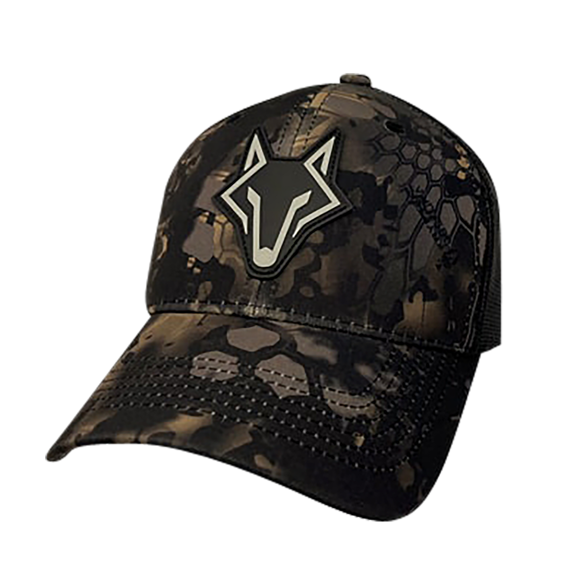Foxpro kryptek obskura nox pattern hat featuring a raised pvc foxhead logo.Structured mesh with 87% polyester/13% spandex.Foxpro raised pvc logo on front.