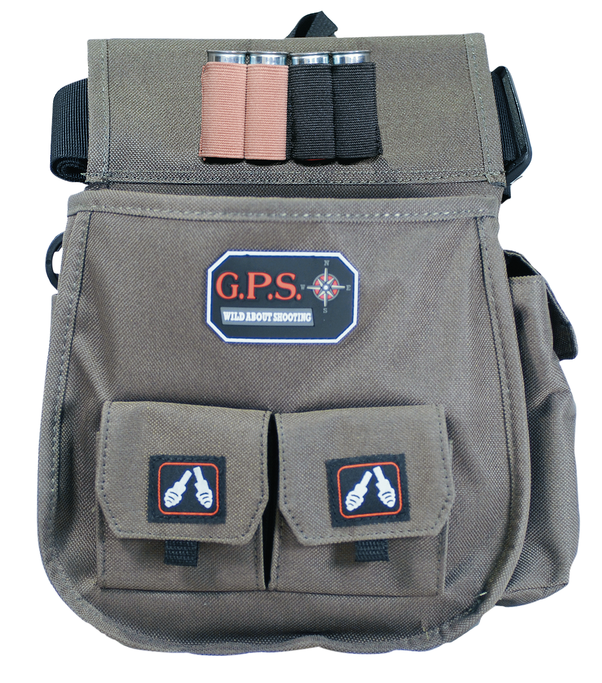 The deluxe double shell pouch features a heavy duty 2" adjustable web belt that fits waist ranging from 30"-52", along with choke tube or shell loops for added convenience.It also features a visual i.D.Storage system to identify the specialized pockets for shooting glasses and hearing protection.