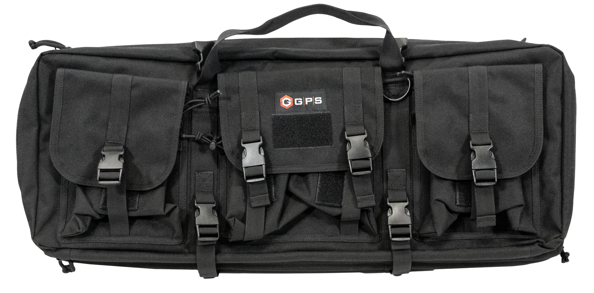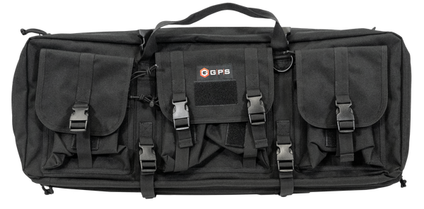 The double rifle case features a main padded double rifle slots with hook & loop lockdown straps and full length padded divider.It also has an external double pistol pocket with two large padded pistol sleeves and two zippered pockets.The case is constructed of 600d polyester with molle compatible webbing, woven cinch straps, side release buckles, and lockable zippers.The pistol pocket has external dimensions of 13" l x 10.50" h, while its internal pistol sleeve is 13" l x 10.50" h.Its middle pocket is 8.25" l x 8.50" h, side pocket 6" l x 8.50"h.