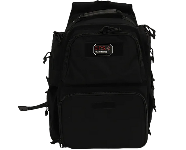 The executive backpack is designed for the shooter who needs to transport his handguns to and from the range without anyone knowing what is in the pack.The executive has an removable foam cradle the holds five handguns securely inside the pack.This pack features 16 removable visual i.D.Icon patches to place where you want, and to help you store and protect your shooting accessories.Specialized pockets in the front of the bag are velour lined to protect fine shooting glasses and custom molded ear pieces.It also includes two ammo dump cups to hold bulk ammo and other small parts if needed.The executive backpack also features a computer storage pocket; the padded storage pocket will fit up to a 15" screen laptop while you travel.Pull out rain cover protects gear from a sudden rain and lockable heavy duty ykk zippers provide added security.
