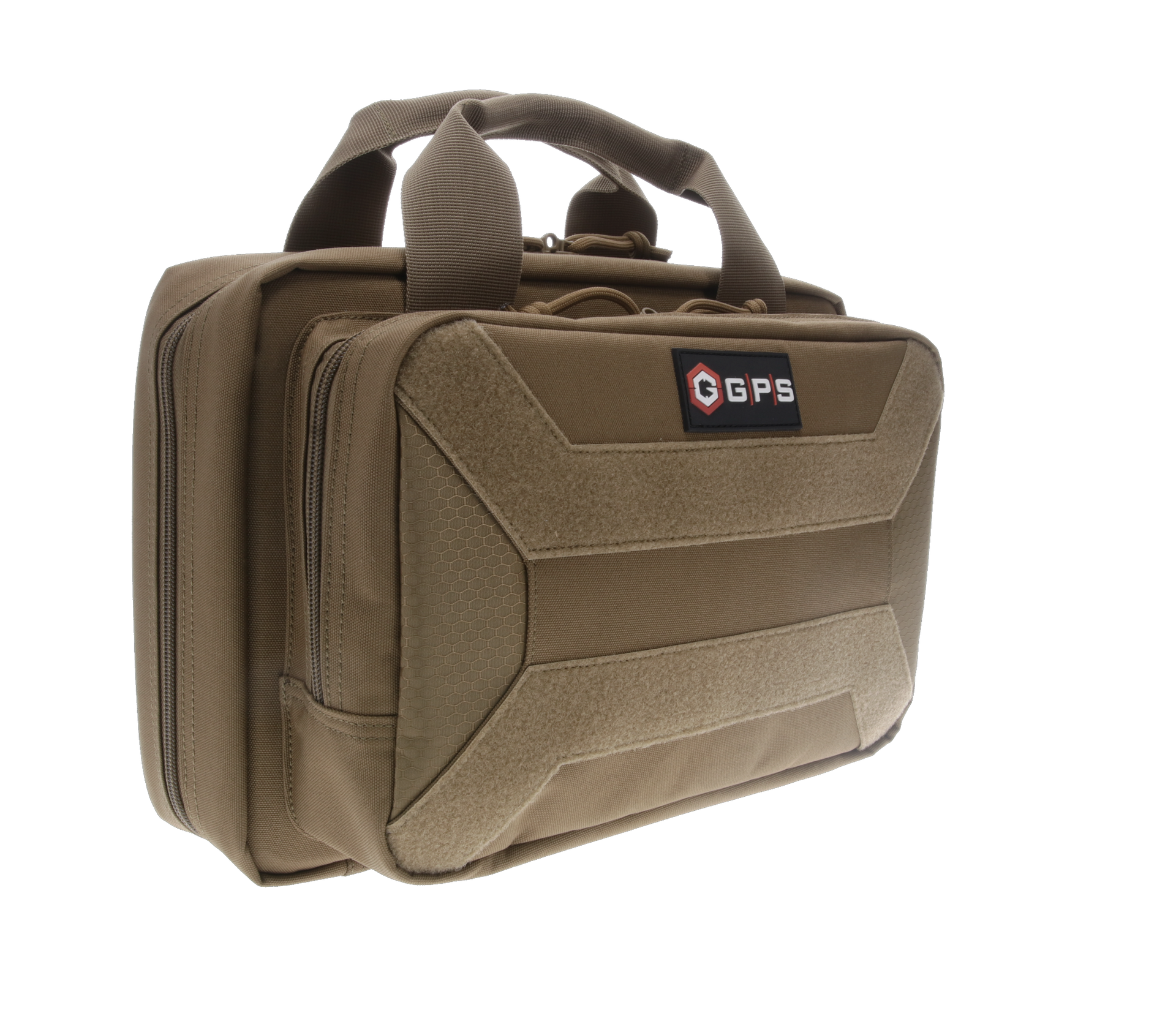 The pistol case features a hook & loop front panel, cushioned pistol compartments, and enhanced knitted elastic mag slots which fits model sized mags.It is constructed of 600d polyester with lockable zippers, lockable admin pocket, and lays flat.The pistol pocket has dimensions of 12.50" l x 7.50" h, enhanced magazine slots are 8.50" h x 1.75", and the front pocket is 12" l x 7.50" h x 2"w.