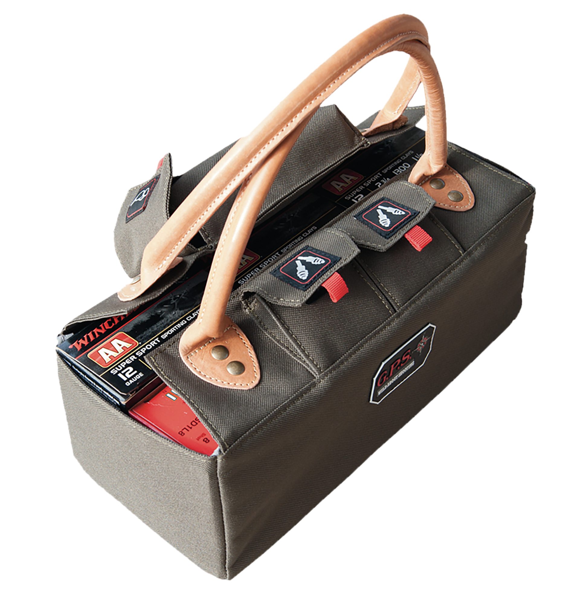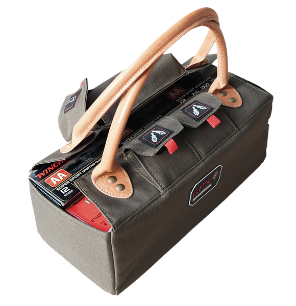 The shotgun shell tote features rivet reinforced leather handles which makes it easy to carry.It holds up to 6 boxes of 12 ga shells and has a visual id storage system.Shell Count: 6 BoxesColor: OliveMaterial: Leather HandlesModel: Shotgun Shell ToteFinish: OliveCompartments: OliveView more