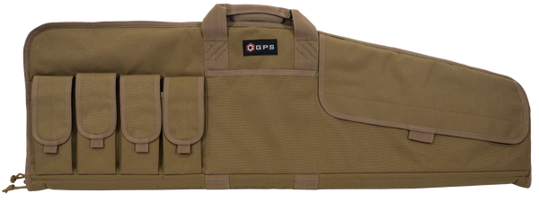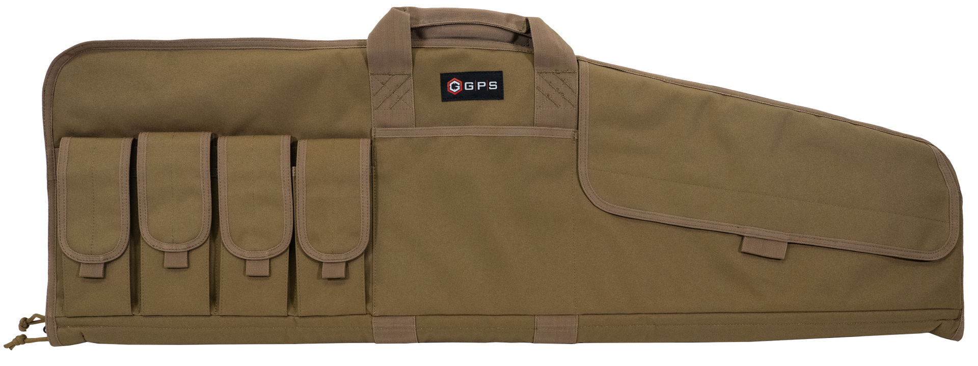 The single rifle case features a main padded compartment with soft fleece-lined padding, adjustable rigid hook & loop lockdown strap, and lays completely flat when opened.The case also has an adjustable mag pouch, quick front pouch, lockable zippers, and woven pull tabs.