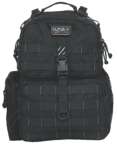 The tactical range backpack is made of 1000 denier heavy-duty material with dupont teflon coating, lockable ykk brand oversized self-tracking zippers, triple-stitched molle webbing, external bungee for targets, pull-out rain cover, 4 outside zippered pockets for ammo and other accessories as well as a padded waist strap for load stability and an internal honey comb frame for rigidity of the pack.Visual id storage areas provide velour-lining to protect glasses and ear pieces and aid in quick access of other items such as keys, cell phone or tools.The tactical range backpack has 3 removable handgun storage cases with magazine storage and a hook and loop gps tactical logo patch, removable to personalize with a name or club placard.