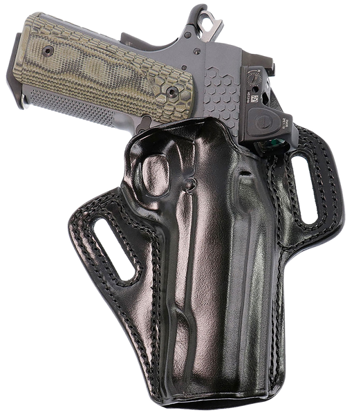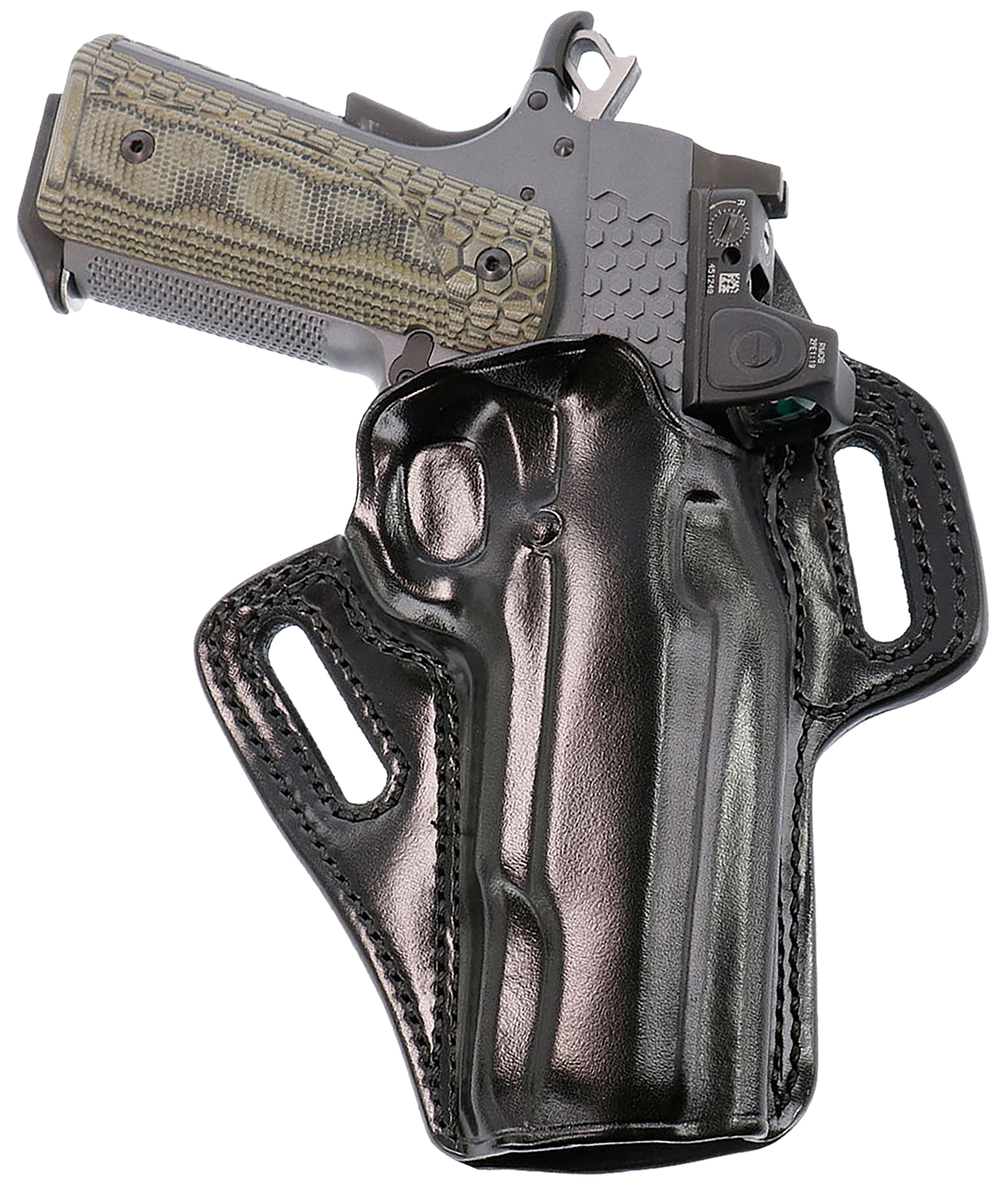 Building on over four decades of success with the original concealable, the 2.0 version is updated for 21st century gun carriers.Cut low at the front, the new design accommodates most popular carry-style red dot optics.The raised sweat guard protects the wearers body from the pistol, and the pistol from the bodys natural perspiration.A mild butt-forward cant offers an easy draw from behind the dominant-side hip while also enhancing concealment with larger defensive pistols.