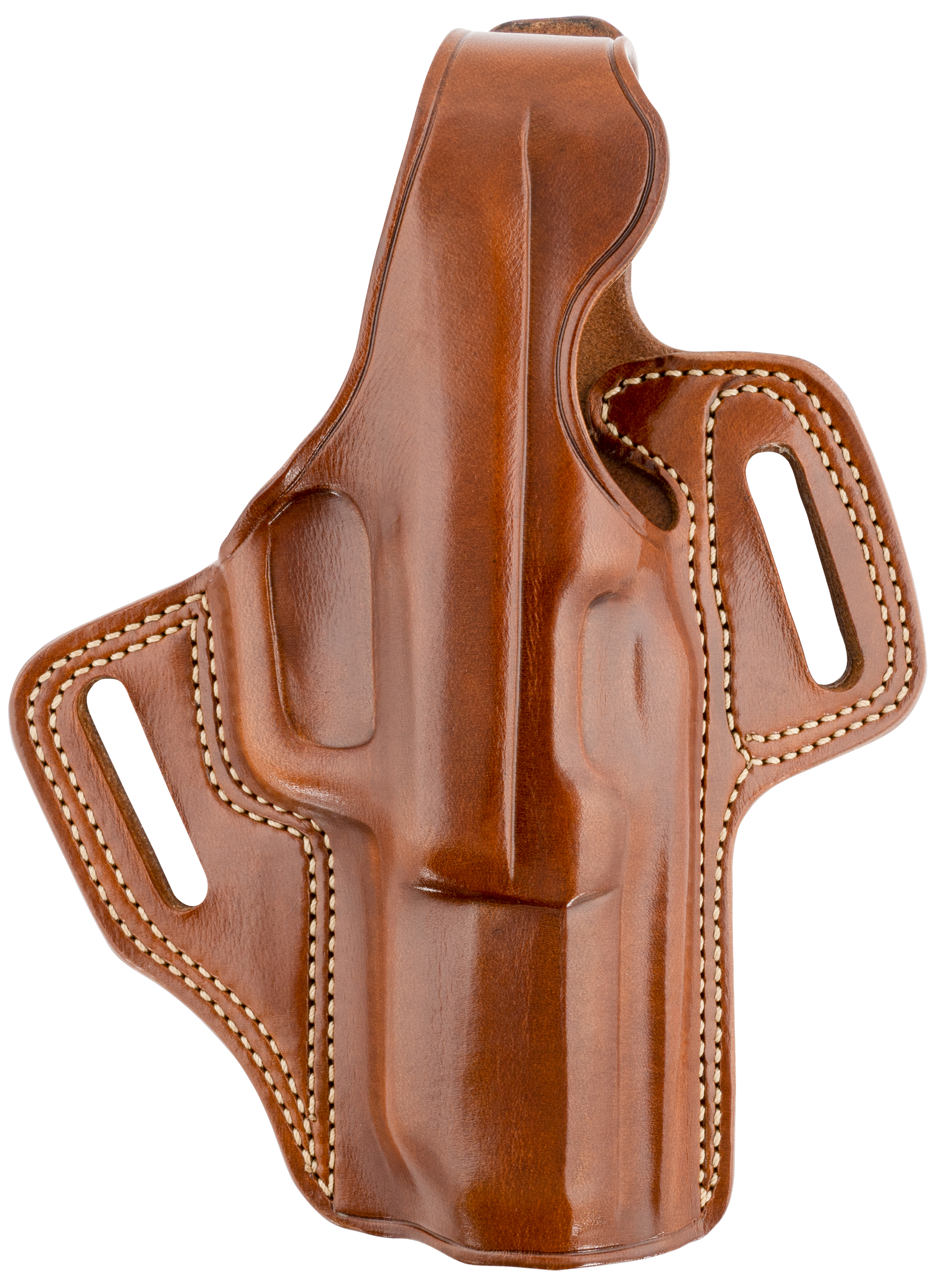 The fletch high ride holster's unique two-piece construction is contoured on the body side to the natural curve of the hip, keeping all the molding on the front of the holster, allowing for significantly more comfortable carry and a narrower profile than an ordinary pancake type holster.Fits a fn five-seven usg/mk2; ruger 57.