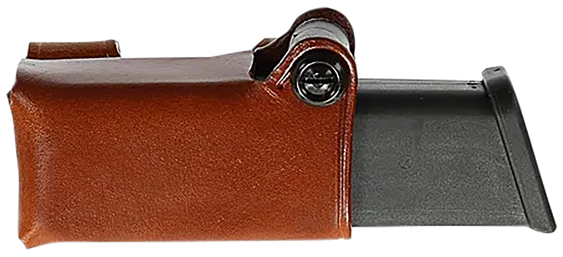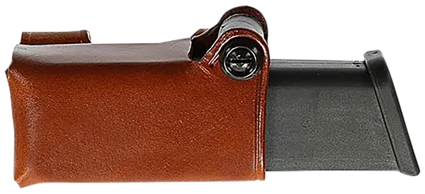Providing an alternative to the traditional vertical magazine carrier, the horizontal magazine carrier holds a single spare magazine in a horizontal position.Two belt channels allow placement around a belt loop for added stability and security.The tension unit adjustment provides a custom fit and secure magazine carry.Color: TanMaterial: SteerhideModel: HMCView more