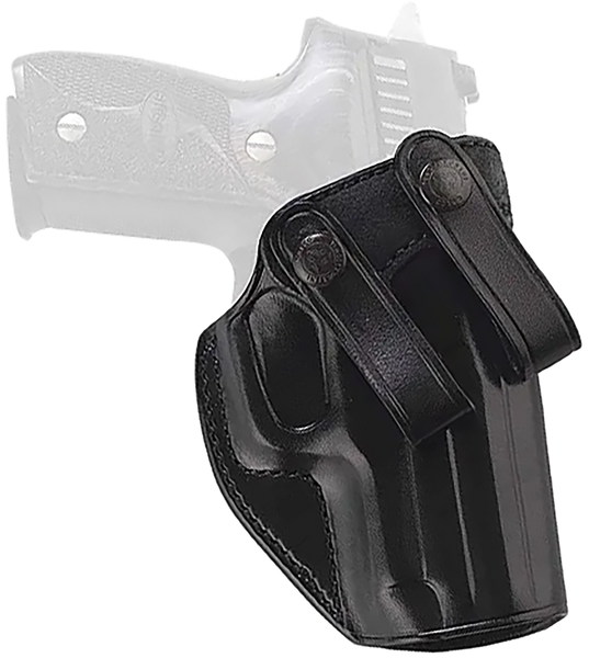 The summer comfort features a snap-on design that allows the holster to attach and detach from the belt without removing the belt.Reinforced premium steerhide construction retains its shape when the handgun is removed, allowing smooth and easy return to the holster.The smooth-out leather construction rides comfortably against the body, and features full firing grip clearance for a quick and sure draw.It's supplied with removable black belt loops fitting belts up to 1 3/4.
